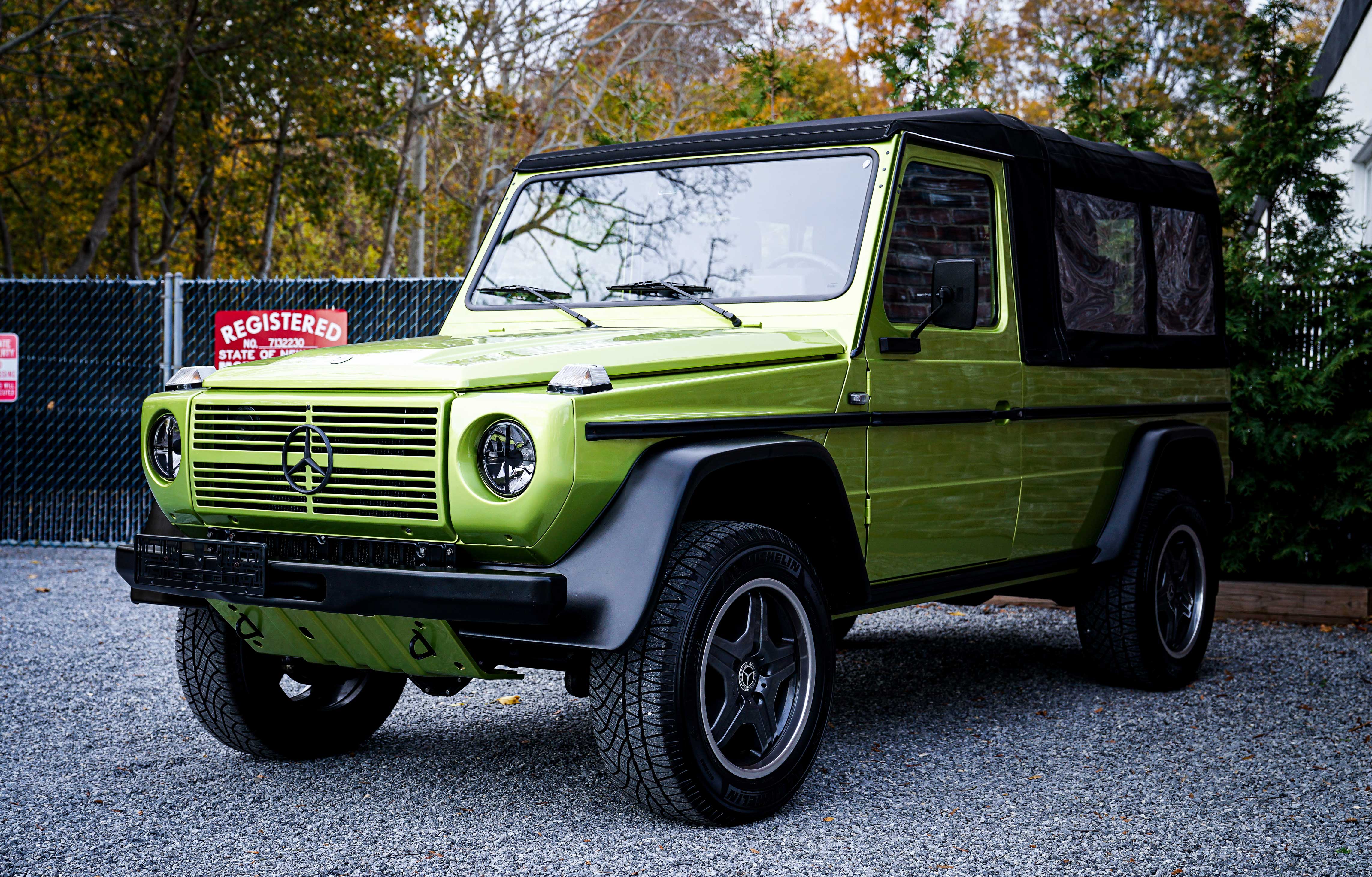 This 1994 Mercedes-Benz G-Wagon Convertible is a restored and well-sorted example finished in Metallic Green over a black interior. Its removable soft top adds open-air versatility, and the 4-cylinder gasoline engine paired with an automatic transmission makes it ideal for relaxed cruising and light off-road use. Upgraded Scheel-Mann seats and a Blaupunkt Bluetooth audio system blend comfort and modern convenience with classic G-Wagen character. With stock number 0372, it offers an approachable entry into the G-Wagon world and is equally suited for beach runs, weekend drives, and everyday enjoyment. For additional details about this vehicle, please contact us directly at Superior Motors North Fork LLC.